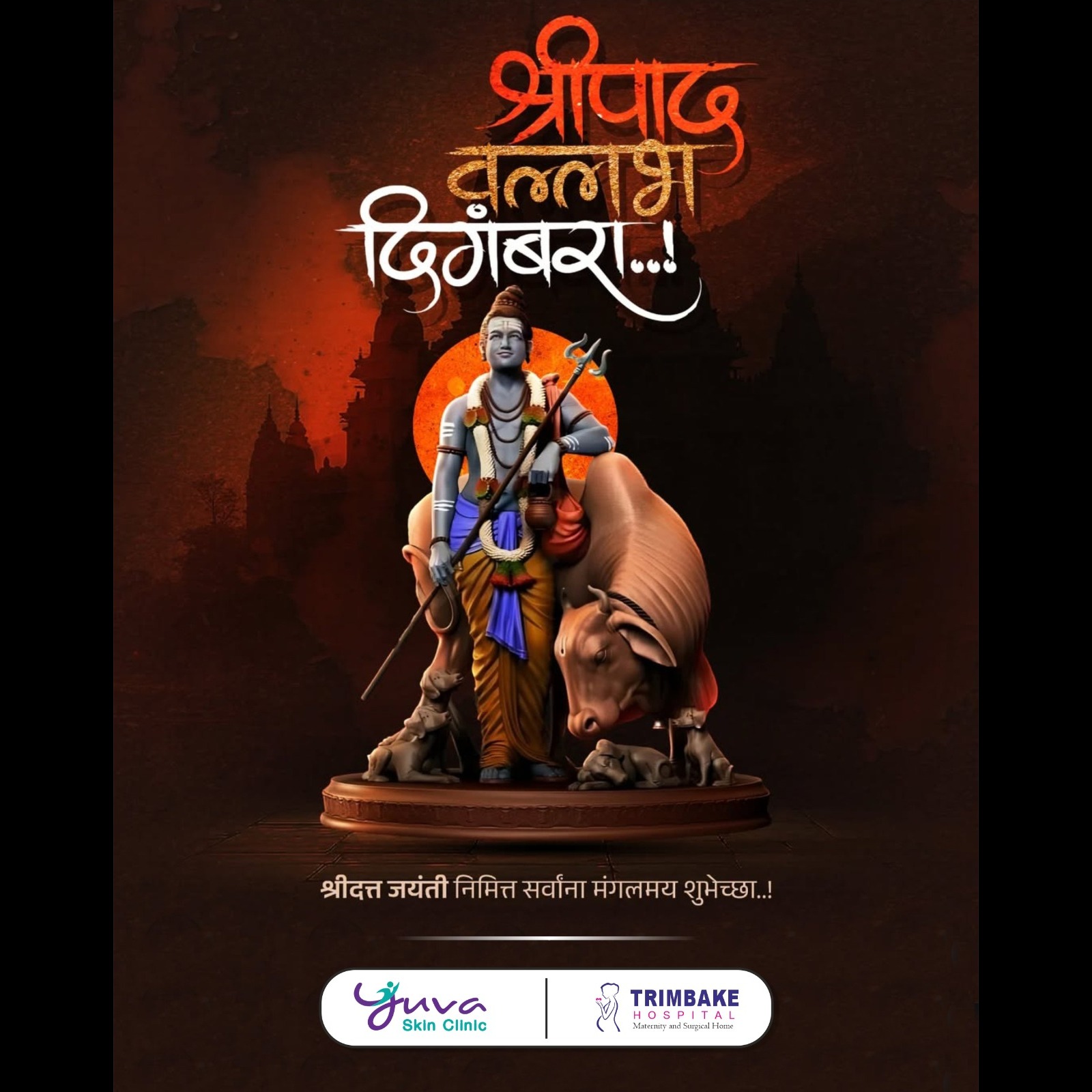 धावत येसी भक्तांसाठी, ब्रम्हा, विष्णू, महेश्वरा!! दिगंबरा दिगंबरा श्रीपाद वल्लभ दिगंबरा!! दत्त जयंतीच्या हार्दिक शुभेच्छा! #दत्तजयंती #दत्त