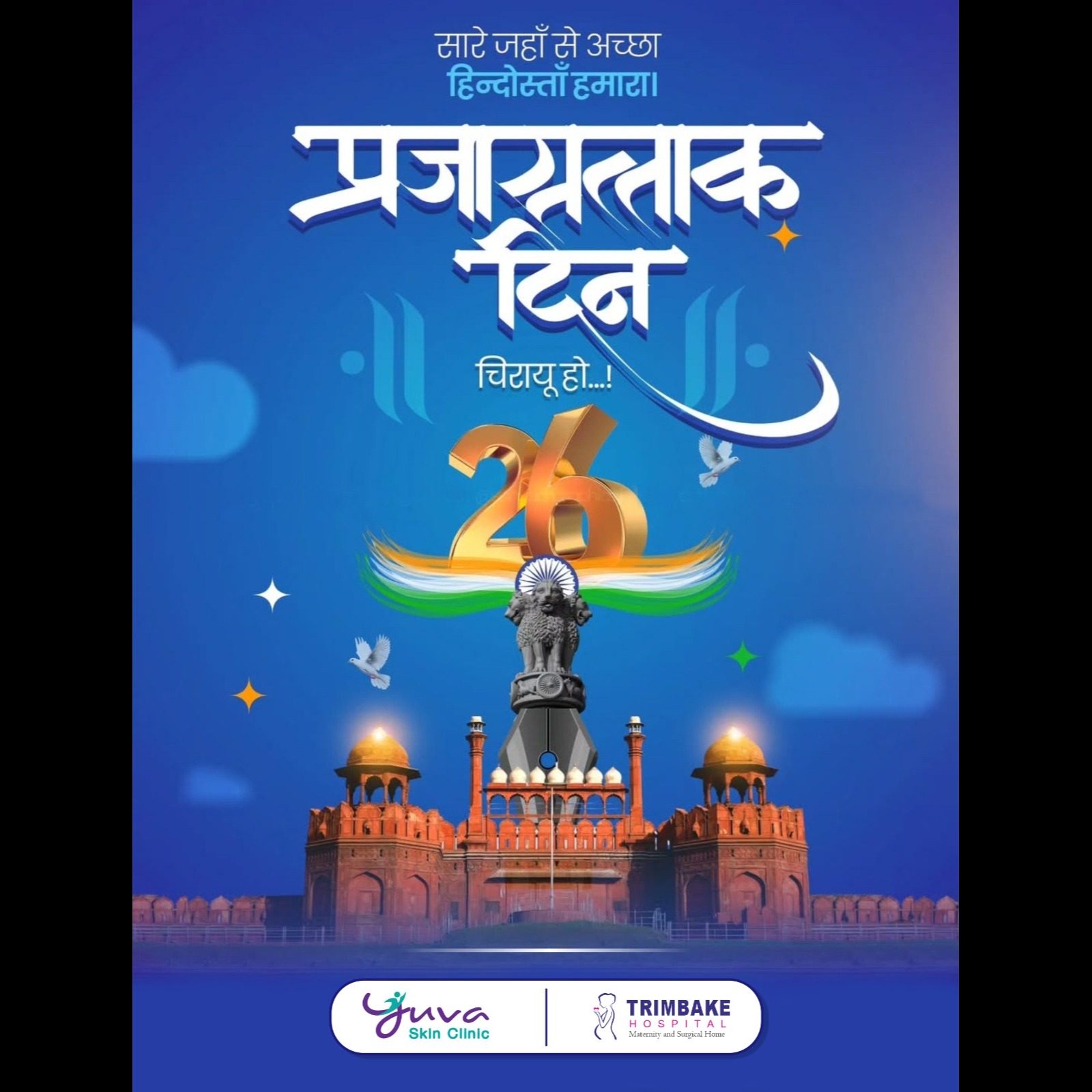 उत्सव तीन रंगांचा, आभाळी आज सजला. नतमस्तक मी त्या सर्वांसाठी, ज्यांनी भारत देश घडविला. ७७ व्या प्रजासत्ताक दिनाच्या शुभेच्छा! भारतीय प्रजासत्ताक दिन चिरायू होवो !
